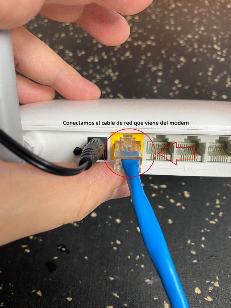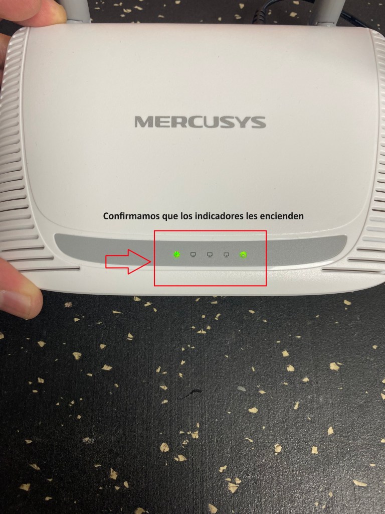 Luego, conectá el cable de red (Ethernet) desde tu módem de internet al puerto WAN del router Mercusys. Una vez hecho esto, verificá que los indicadores LED del dispositivo se enciendan correctamente, lo que confirma que el router está recibiendo energía y señal de internet.
