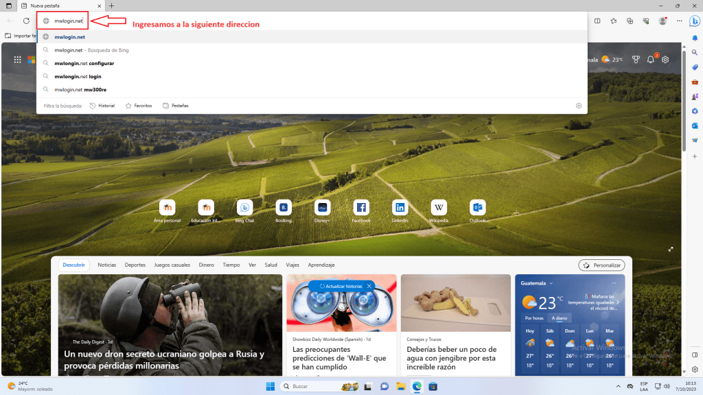 Luego, abrí tu navegador de internet (Chrome, Edge, Firefox, etc.) y en la barra de direcciones escribí: mwlogin.net.