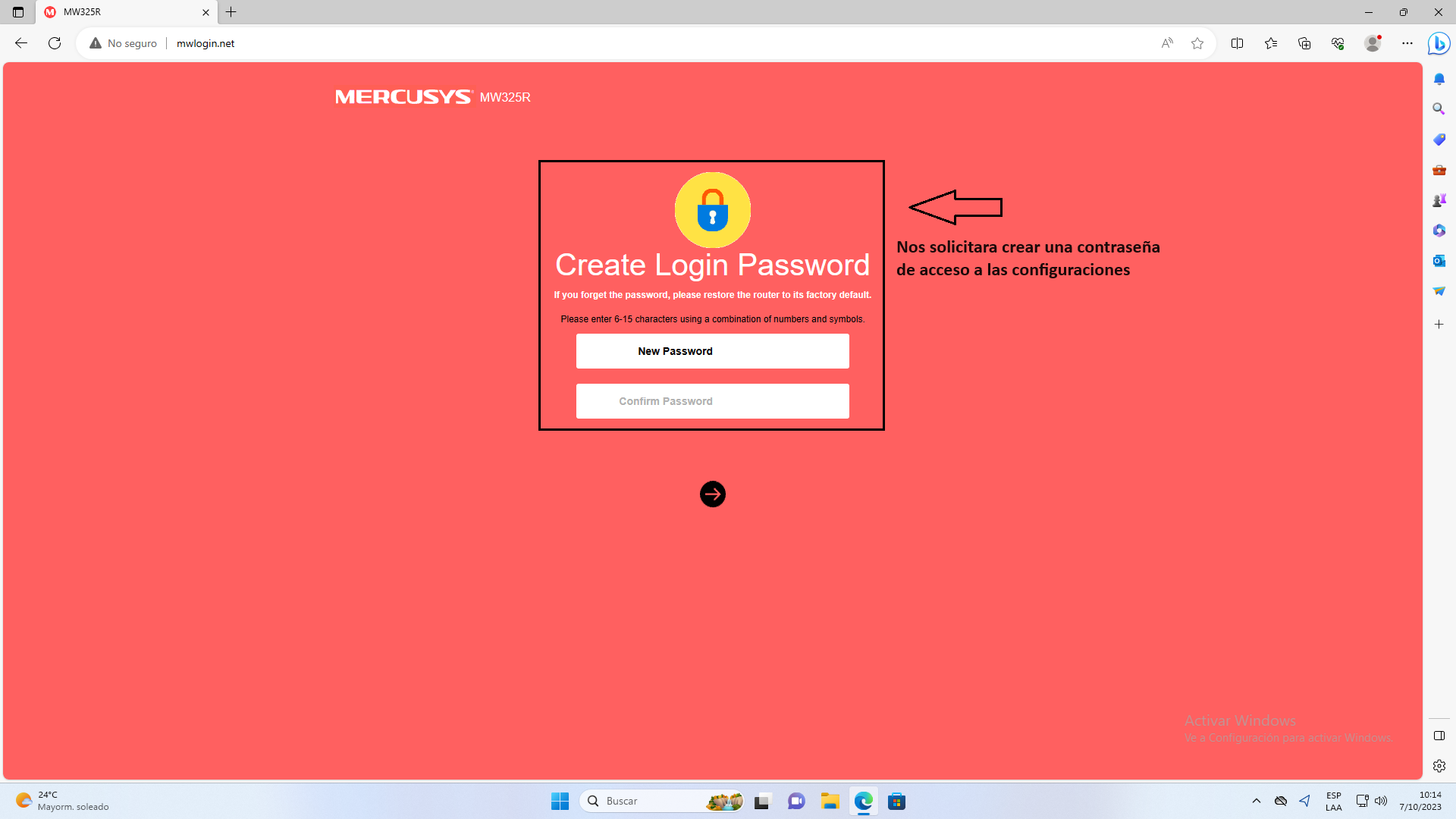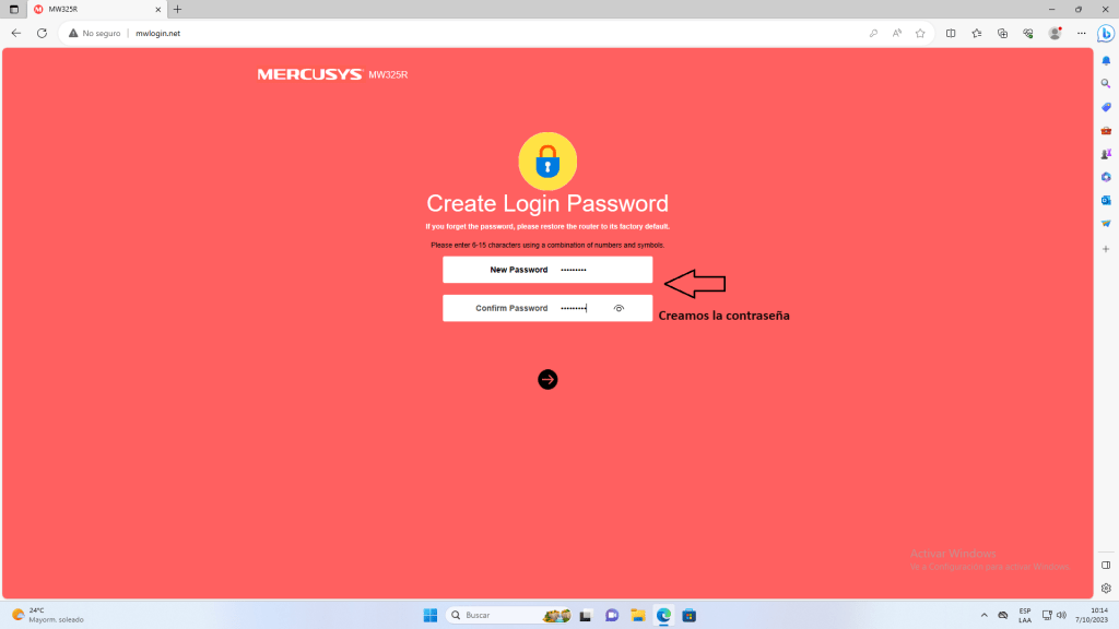 Paso 3: Crear la contraseña de administrador del Mercusys MW325R