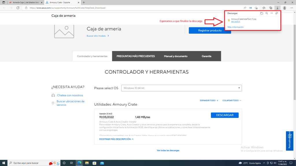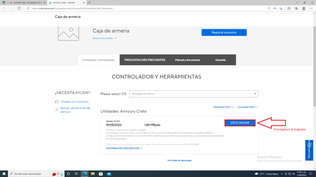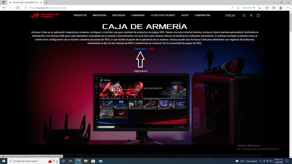 Paso 1: Descargar Armoury Crate desde la página oficial de Asus