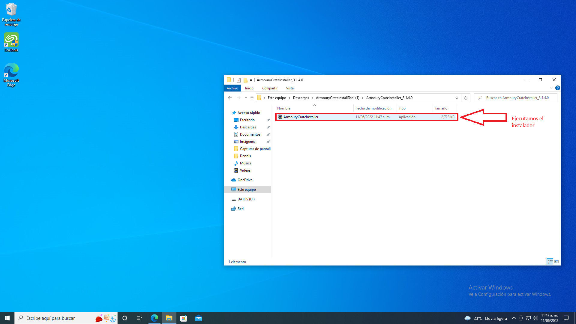 Una vez finalizada la descarga, dirigite a la carpeta de descargas de tu computadora. Allí encontrarás el archivo comprimido de Armoury Crate.