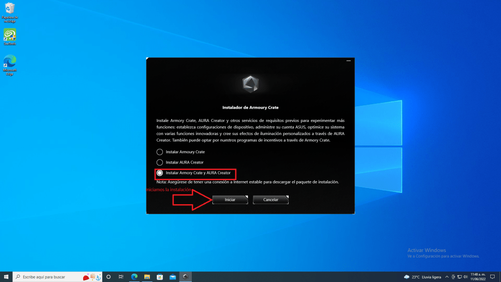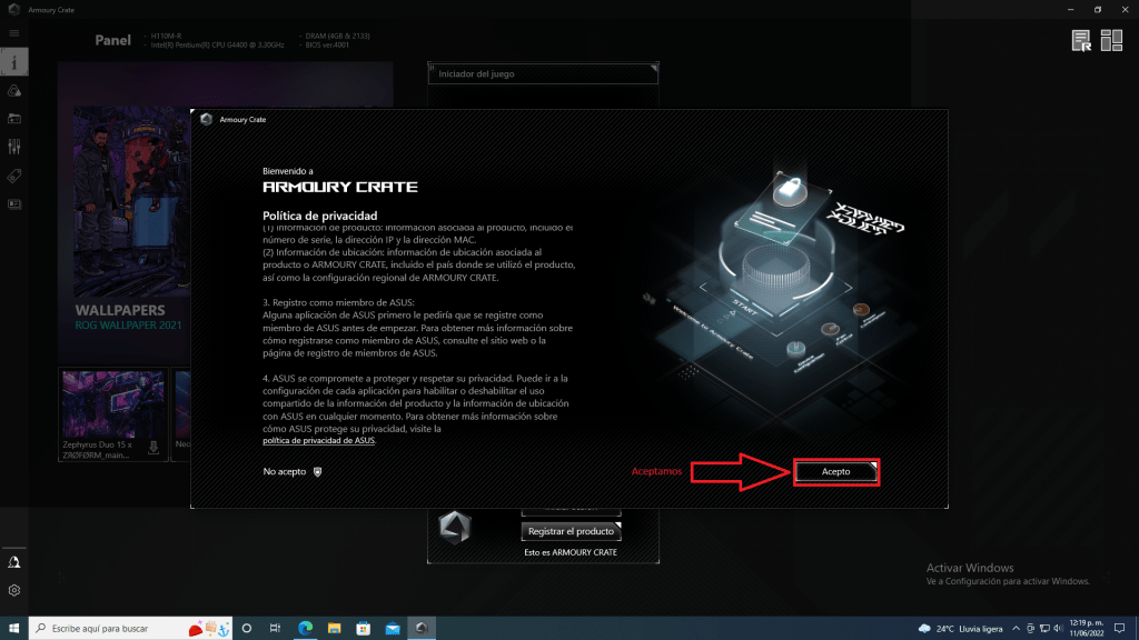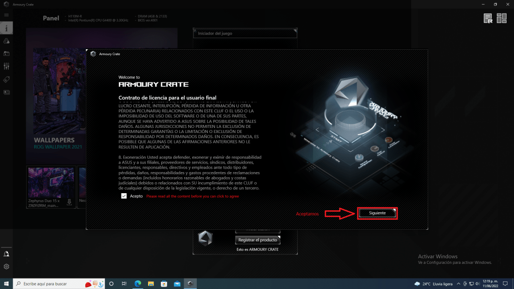 Paso 3: Ejecutar Armoury Crate y otorgar permisos