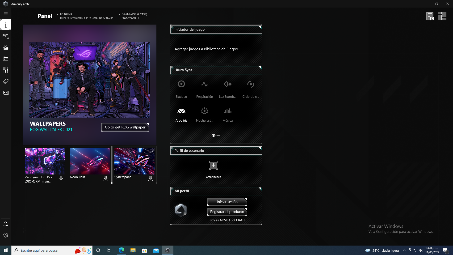 Cuando la instalación de Armoury Crate haya finalizado, abrí la aplicación desde tu escritorio o menú de inicio.