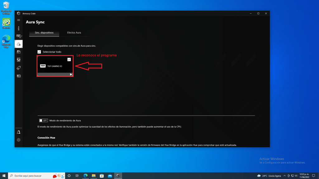 ✅ Con Armoury Crate instalado, tu PC estará lista para reconocer el teclado Asus TUF Gaming K3 RGB Red y comenzar la configuración de iluminación y macros.