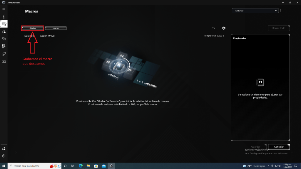 Además, en la pestaña Macros, tendrás la opción de asignar atajos o combinaciones de teclas personalizadas. Esto es ideal para mejorar tu rendimiento en juegos o agilizar tareas repetitivas en tu PC.