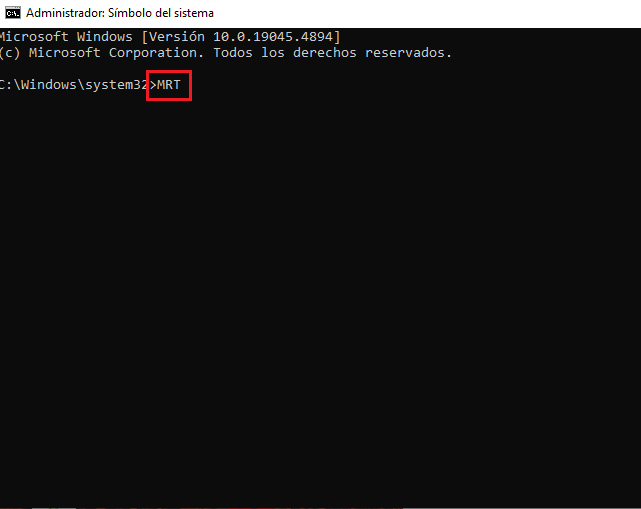 Una vez abierto el Símbolo del sistema (CMD) en modo administrador, escribí el siguiente comando y presioná Enter: MRT