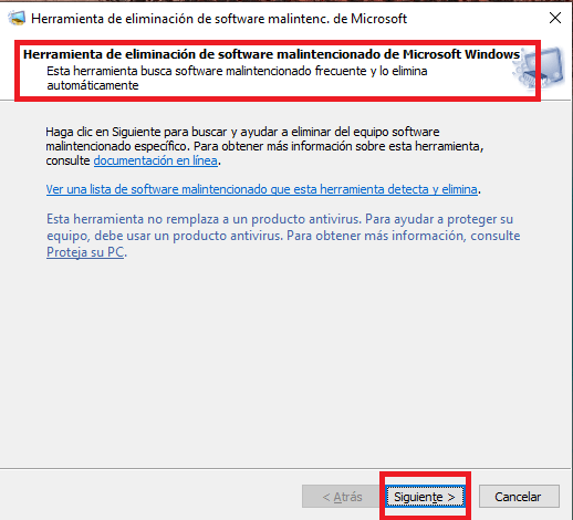Paso 2: Ejecutar la herramienta de eliminación de software malicioso (MRT)