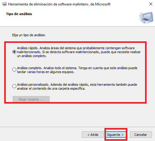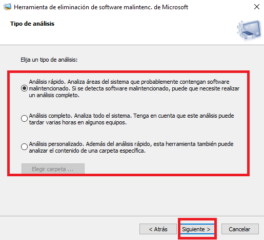 La herramienta de Microsoft te dará la opción de elegir el tipo de análisis que deseas realizar en tu computadora: