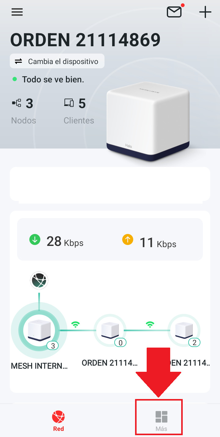 Abrí la aplicación Mercusys en tu dispositivo móvil (disponible en Android y iOS). Es importante que previamente tengas configurado tu Mercusys Router Mesh Halo H50G y vinculado en la app.