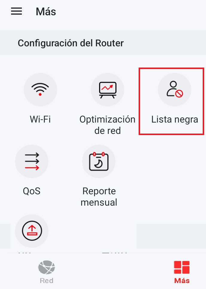 Dentro de la aplicación Mercusys, seleccioná la opción “Lista Negra” desde el menú de configuraciones avanzadas.