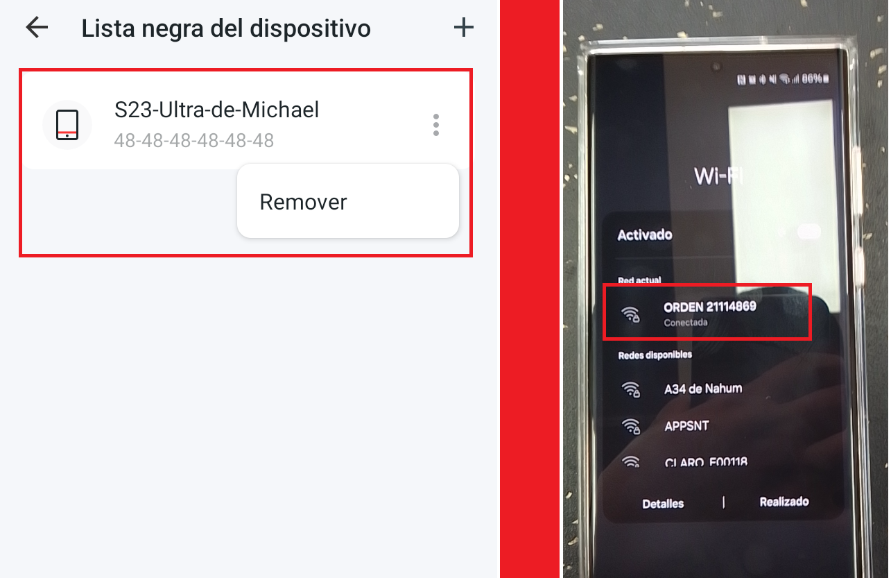 Desde allí, seleccioná el dispositivo bloqueado que ya no deseás restringir y eliminálo de la lista. Automáticamente, el equipo podrá reconectarse a la red Wi-Fi y navegar sin limitaciones.